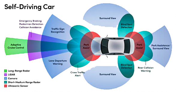 핵심부품으로는 카메라/레이더/라이다가 있음