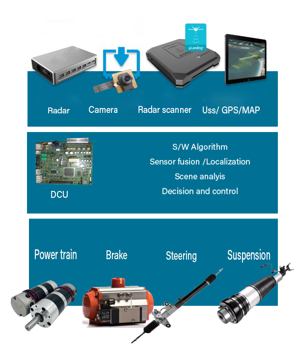 자율자동차 프로세스는 크게 인지, 판단, 제어이며 각 기기간 통신에 의해 제어됨